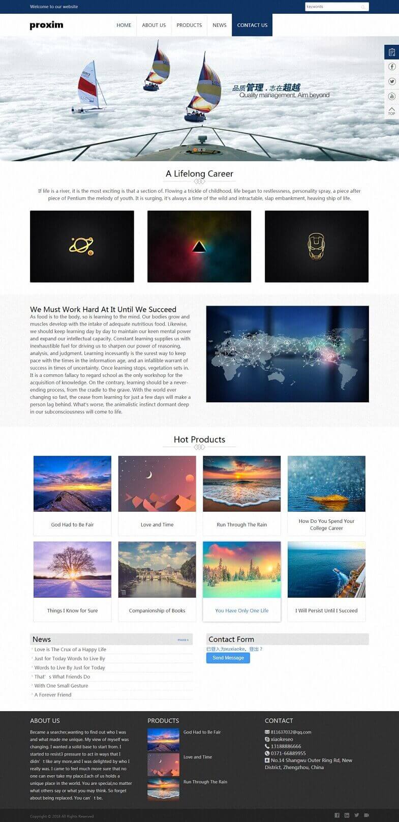 作为一个营销型的企业产品展示网站,Proxim 主题的UI设计沉稳大气而又不失效果,是您网络拓展市场最好的利器。全站模块均可后台设置,且设置自由,设置方便,设置简单,不懂任何代码的小白也能够快速的上手使用!