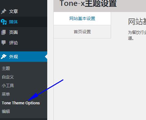 通过上面的程序就可以创建一个名为 Tone Theme Options 的菜单项,效果如下