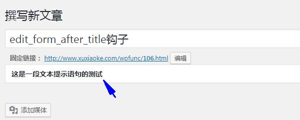 无意中发现这个有趣的wp钩子,这个钩子的主要用处是在WordPress撰写文章页面添加一段提示标语的功能,用法也很简单,只需要把下面的代码放在functions.php文件中就行,内容改成你需要的。